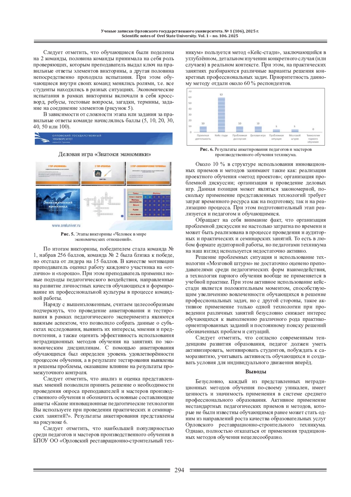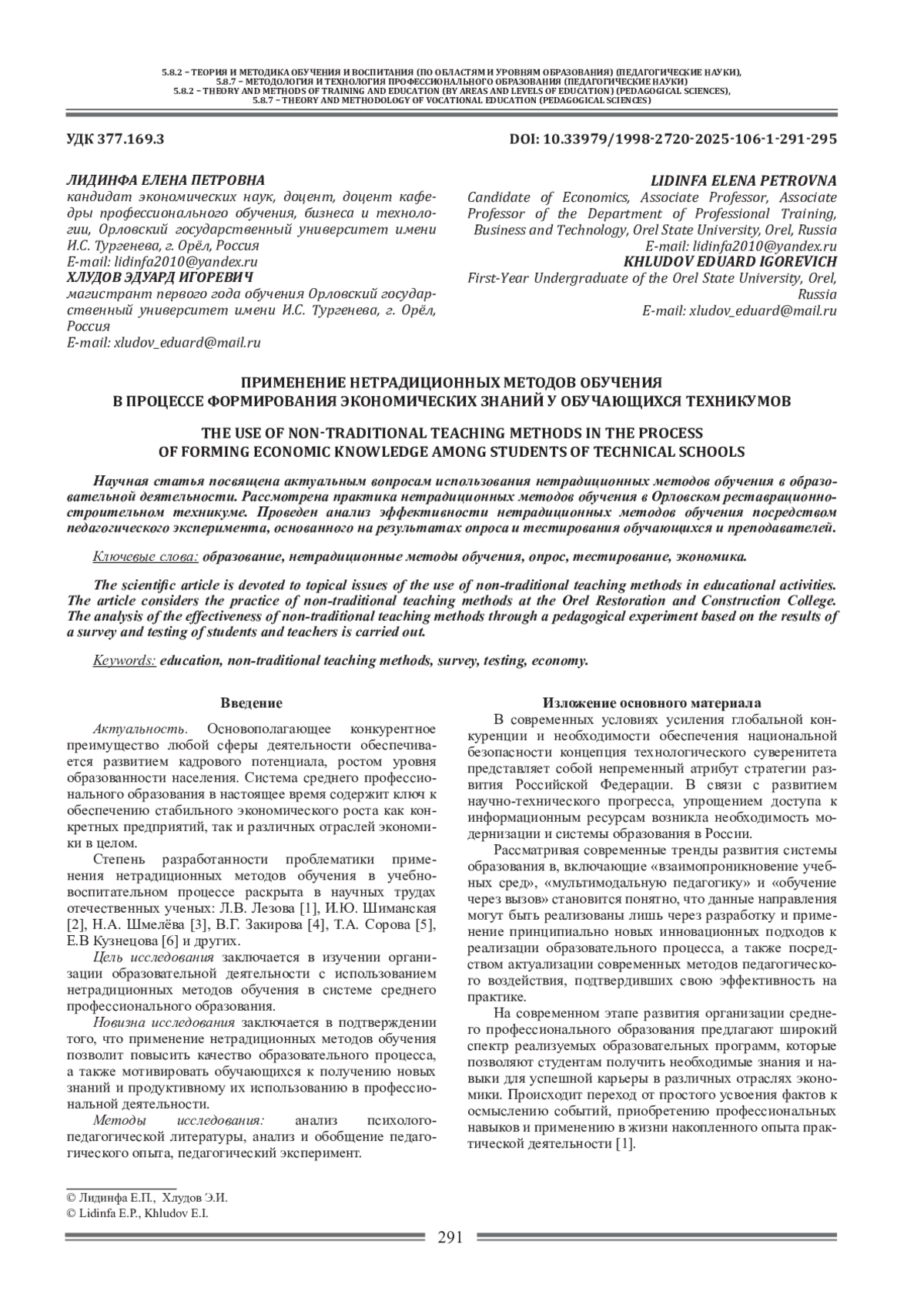 9. Хлудов Э.И. Использование нетрадиционных методов обучения при освоении экономических дисциплин в техникуме: выпускная квалификационная работа (ВКР) по направлению подготовки 44.03.04 - Профессиональное обучение (по отраслям), направленность (профиль) “Экономика и управление” / Э. И. Хлудов; рук. Е. П. Лидинфа. - Орел: [б. и.], 2024. 105 с.
