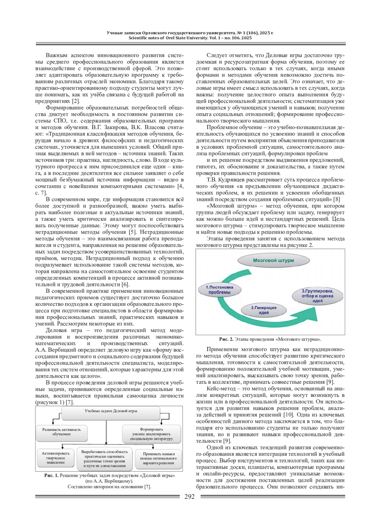 8. Кузнецова Е.В. Использование технологии проблемного обучения в процессе преподавания экономических дисциплин в системе среднего профессионального образования / Е.В. Кузнецова, Э.И. Хлудов // Путь в науку. современная национальная экономика: молодые ученые - новый взгляд Материалы Всероссийской научно-практической конференции. Орёл, 2024 С. 31-38 item.asp?id=68584798. EDN: MYVXMO