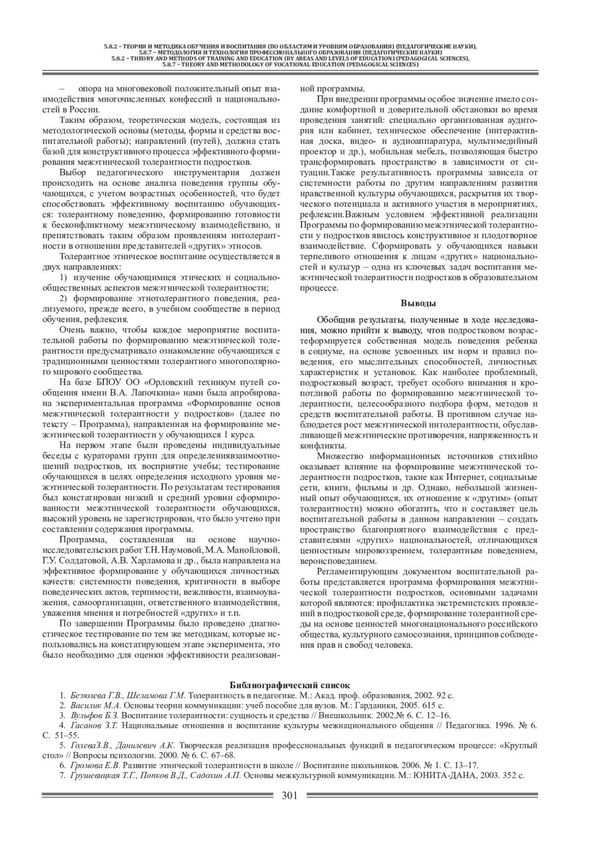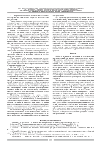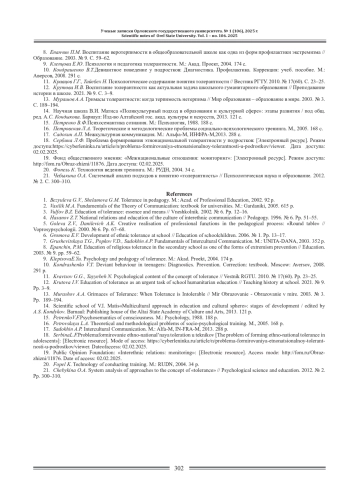 1. Безюлева Г.В., Шеламова Г.М. Толерантность в педагогике. М.: Акад. проф. образования, 2002. 92 с. EDN: SNEMHF