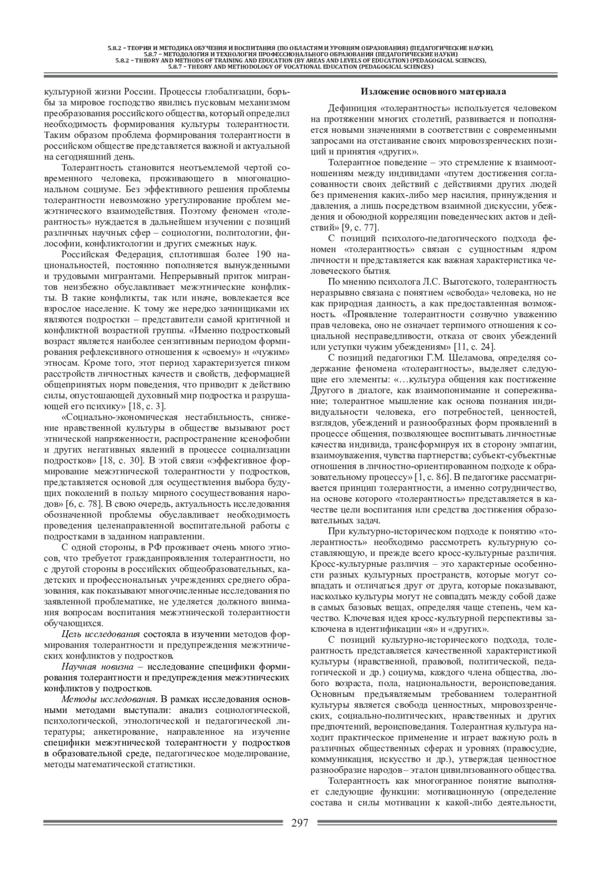 12. Крутова И.В. Воспитание толерантности как актуальная задача школьного гуманитарного образования // Преподавание истории в школе. 2021. № 9. С. 3-9. EDN: JLPWGV