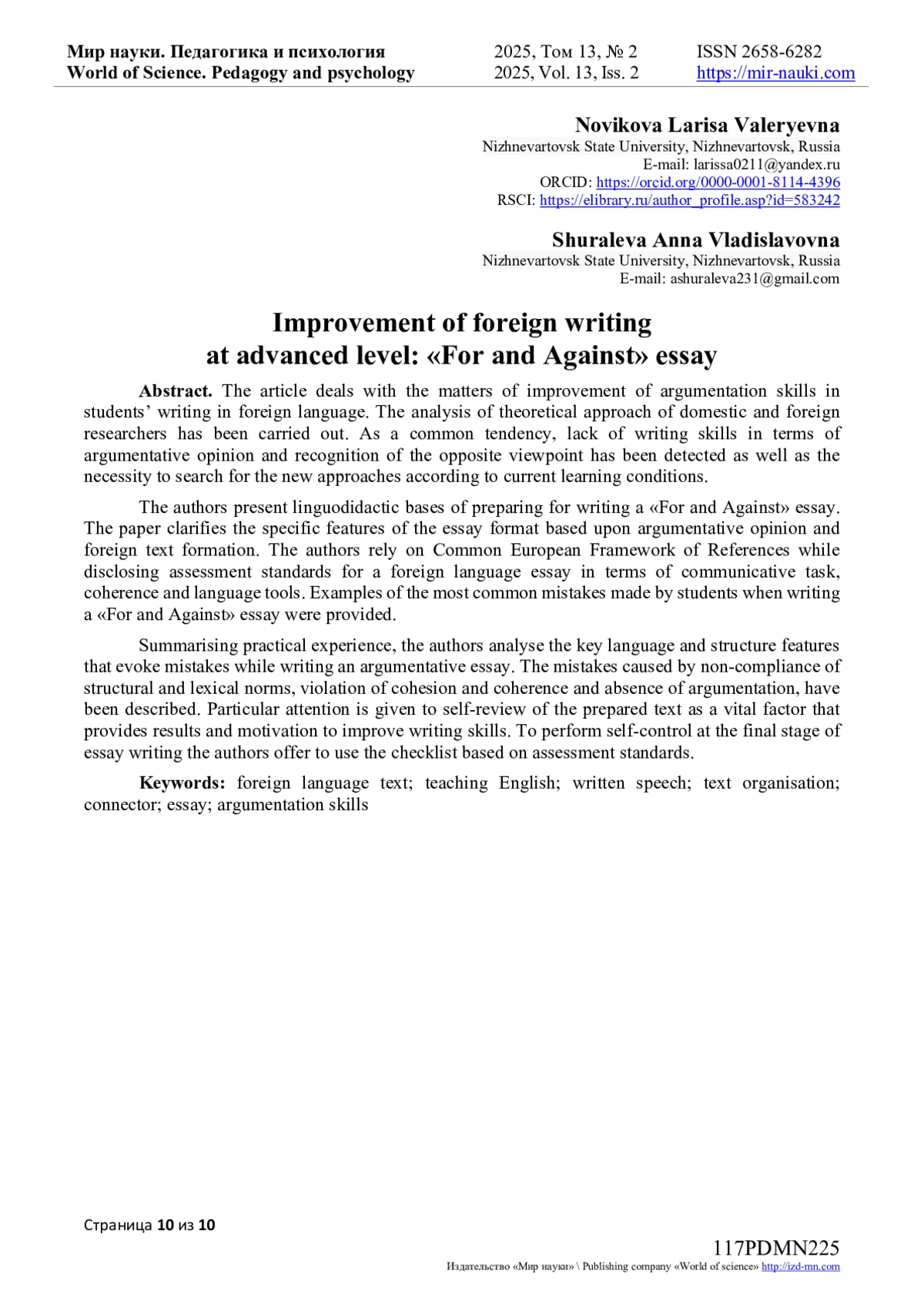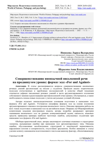 10. Аниськина Н.В. Средства реализации жанрообразующих признаков англоязычного эссе / Н.В. Аниськина, О.В. Мурдускина // Вестник ПНИПУ. Проблемы языкознания и педагогики. - 2020. - № 2. - С. 90-102.