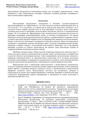 1. Lindauer N. Textproduktion von schwach schreibenden Jugendlichen. Eine empirische Studie zum Schreibprozess im Kontext des persuasiven Argumentierens [Производство текстов слаборазвитой молодежью. Эмпирическое исследование процесса написания в контексте убедительных аргументов] / N. Lindauer. - DOI: 10.25656/01:22806 // Münster; New York: Waxmann, 2021. - 306 с. - URL: https://clck.ru/3M49Yu. (дата обращения: 28.04.2025). - (На нем. яз.).