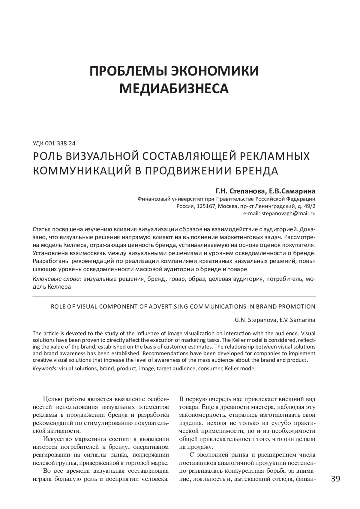 Статья посвящена изучению влияния визуализации образов на взаимодействие с аудиторией. Доказано, что визуальные решения напрямую влияют на выполнение маркетинговых задач. Рассмотрена модель Келлера, отражающая ценность бренда, устанавливаемую на основе оценок покупателя. Установлена взаимосвязь между визуальными решениями и уровнем осведомленности о бренде. Разработаны рекомендаций по реализации компаниями креативных визуальных решений, повышающих уровень осведомленности массовой аудитории о бренде и товаре.