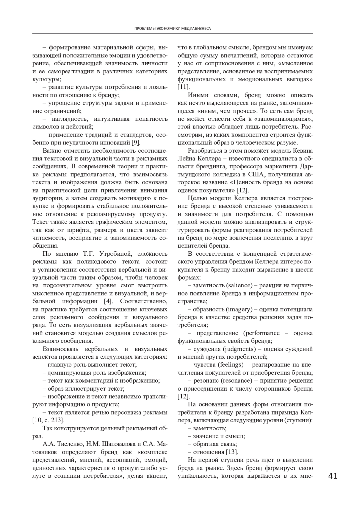 13. Новикова Д.И. Инструменты брендинга в коммуникативной политике. Модель капитала бренда Келлера // Вестник студенческого научного общества ГОУ ВПО “Донецкий национальный университет”. 2023. Т. 3. № 15. С. 132-135. EDN: REZCCY