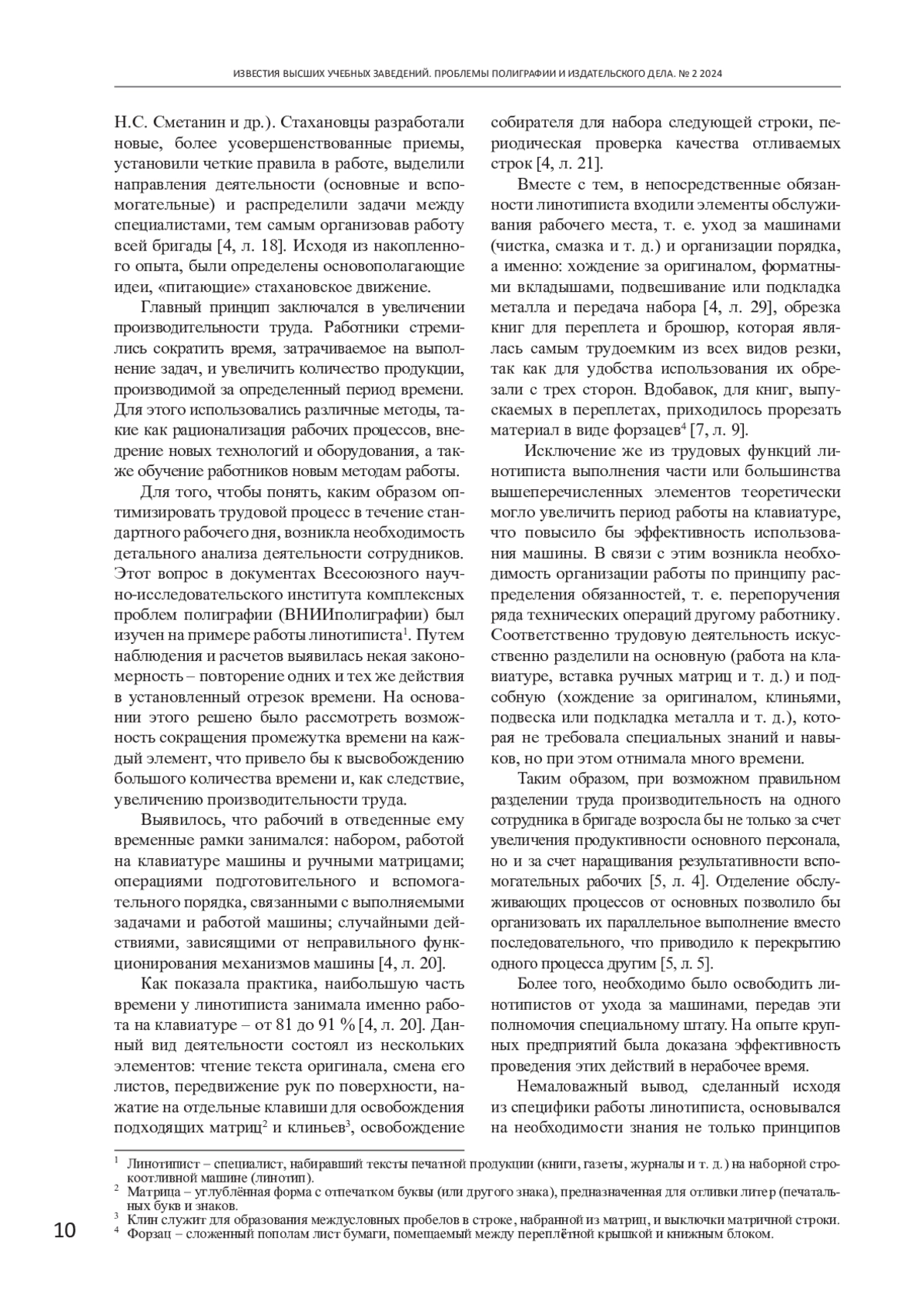 Ключевые фразы: стахановские методы, полиграфия, внииполиграфии, линотипист