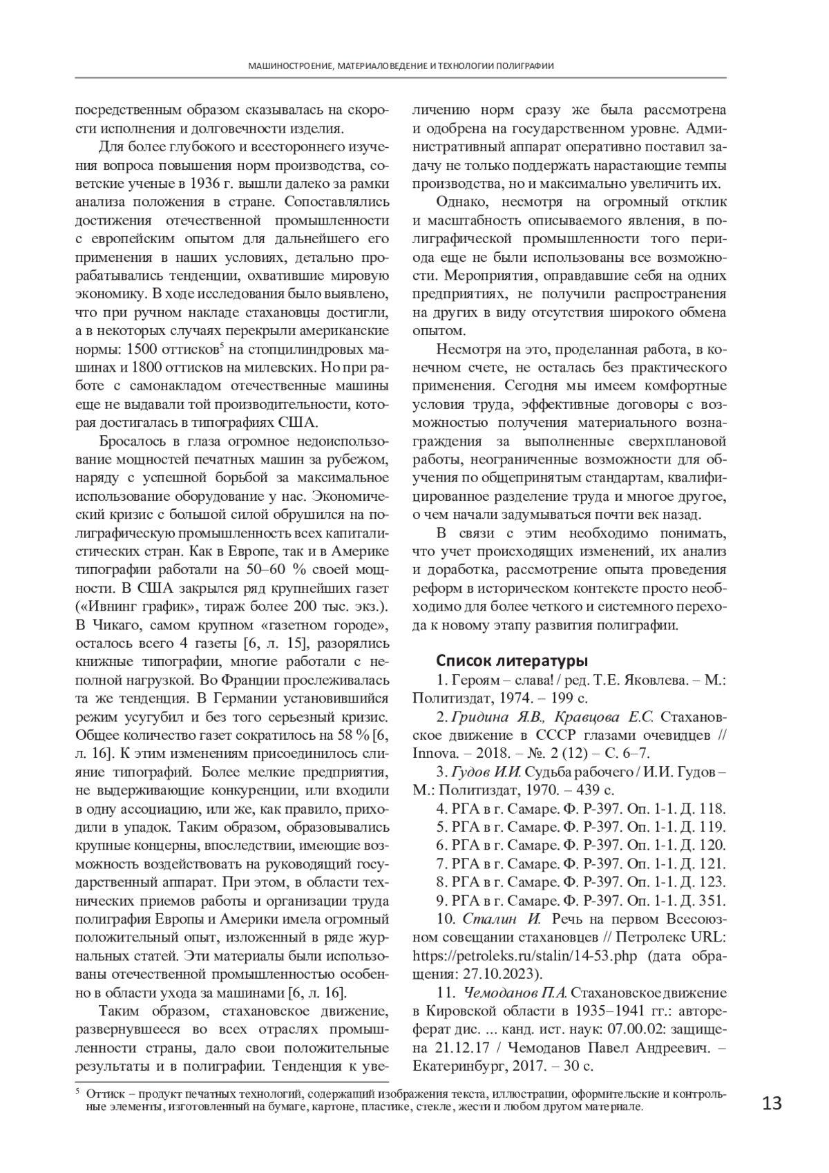 Статья: СТАХАНОВСКИЕ МЕТОДЫ РАБОТЫ ВО ВСЕСОЮЗНОМ НАУЧНО-ИССЛЕДОВАТЕЛЬСКОМ ИНСТИТУТЕ КОМПЛЕКСНЫХ ПРОБЛЕМ ПОЛИГРАФИИ 1936-1937 ГГ. (ПО ДОКУМЕНТАМ РГА В Г. САМАРЕ) (2024)