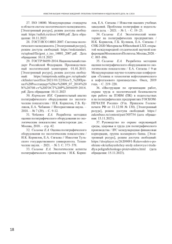 33. Сигаева Е.А. Экологические аспекты полиграфического производства / И.К. Корнилов, Е.А. Сигаева // Известия высших учебных заведений. Проблемы полиграфии и издательского дела. - 2021. - № 1. - С. 19-23. EDN: IXYJKZ