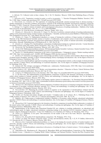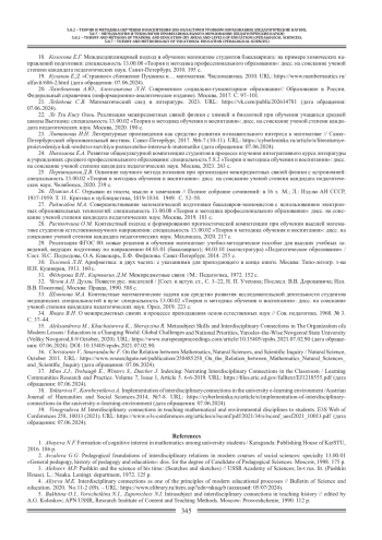 35. Aleksandrova M., Khachaturova K., Sherayzina R. Metasubject Skills and Interdisciplinary Connections in The Organization ofa Modern Lesson / Education in a Changing World: Global Challenges and National Priorities, Yaroslav-the-Wise Novgorod State University (Veliky Novgorod,8-9 October, 2020). URL: https://www.europeanproceedings.com/article/ (дата обращения: 07.06.2024). DOI: 10.15405/epsbs.2021.07.02.90