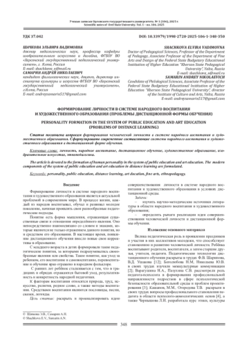 Статья посвящена вопросам формирования человеческой личности в системе народного воспитания и художественного образования. Сформулированы современные составляющие системы народного воспитания и художественного образования в дистанционной форме обучения.
