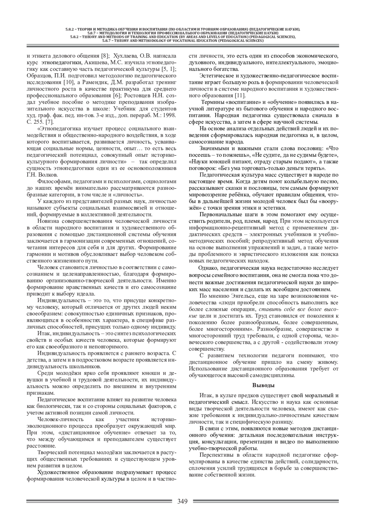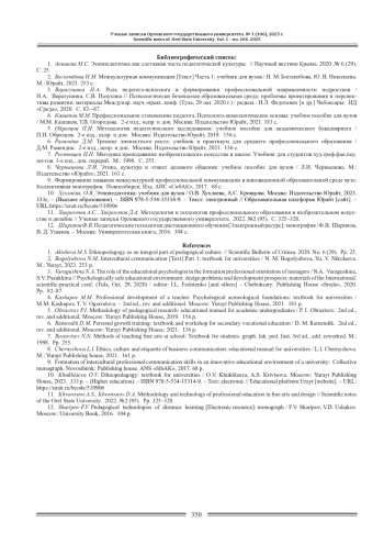 1. Акишева М.С. Этнопедагогика как составная часть педагогической культуры. // Научный вестник Крыма. 2020. № 6 (29). С. 25. EDN: LSSIZM