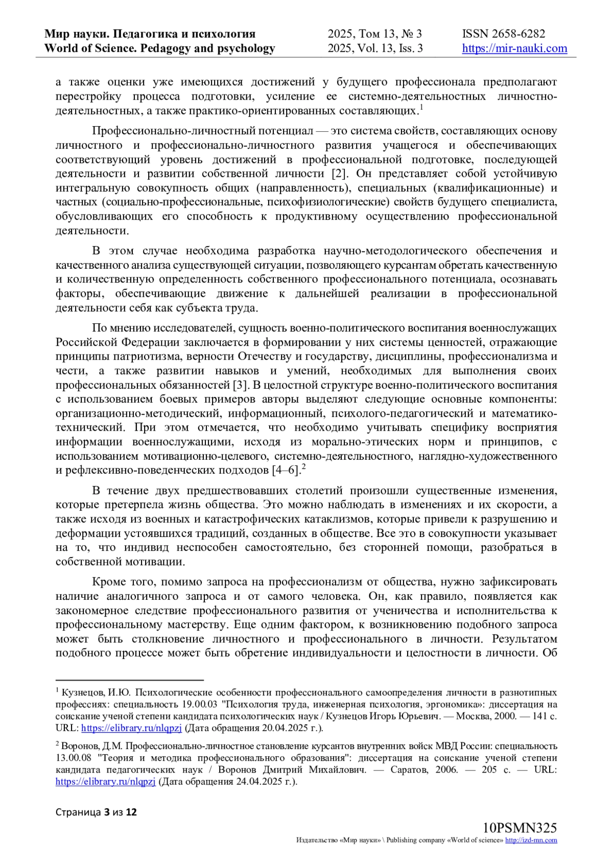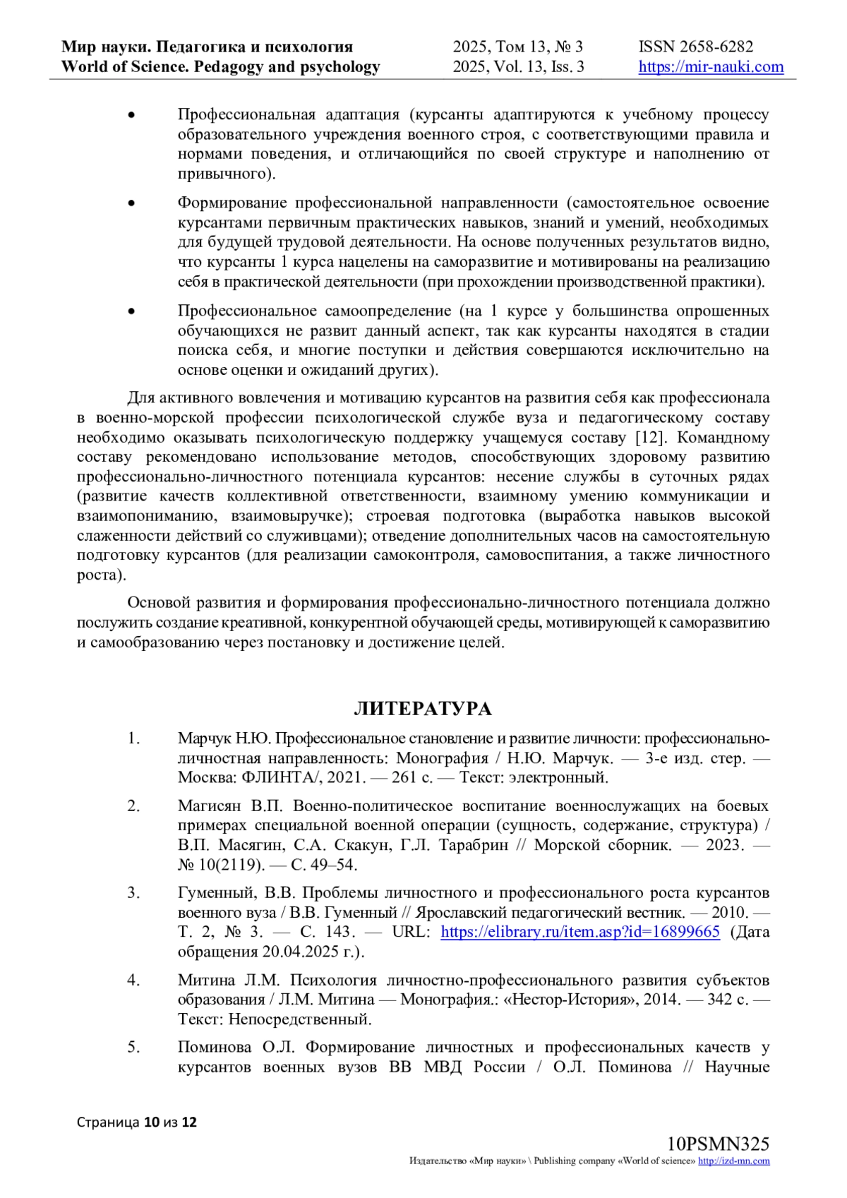 3. Гуменный, В.В. Проблемы личностного и профессионального роста курсантов военного вуза / В.В. Гуменный // Ярославский педагогический вестник. - 2010. - Т. 2, № 3. - С. 143. - URL: item.asp?id=16899665 (Дата обращения 20.04.2025 г.). EDN: OFVFBD