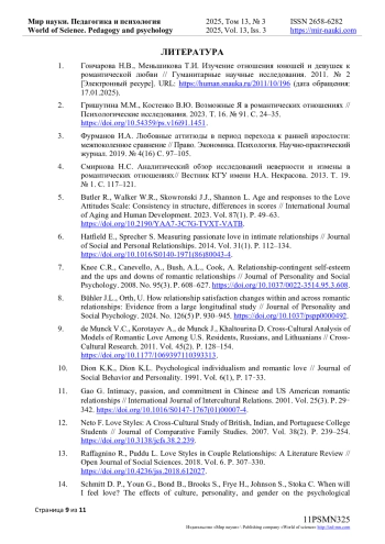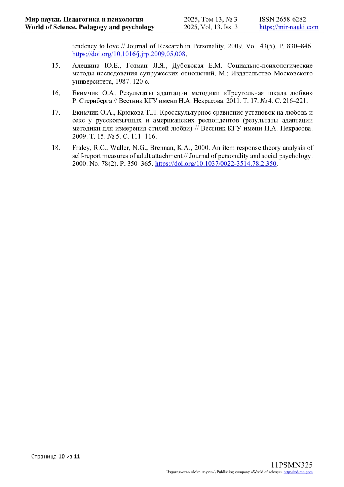 13. Raffagnino R., Puddu L. Love Styles in Couple Relationships: A Literature Review // Open Journal of Social Sciences. 2018. Vol. 6. P. 307-330. DOI: 10.4236/jss.2018.612027