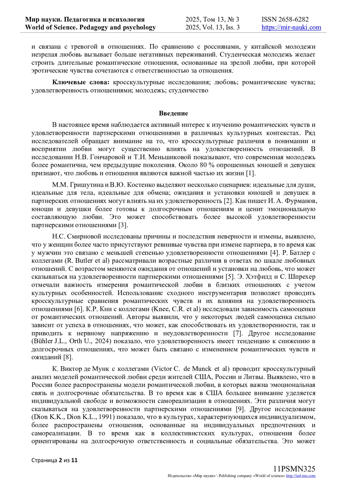 2. Гришутина М.М., Костенко В.Ю. Возможные Я в романтических отношениях // Психологические исследования. 2023. Т. 16. № 91. С. 24-35. DOI: 10.54359/ps.v16i91.1451 EDN: REQICA