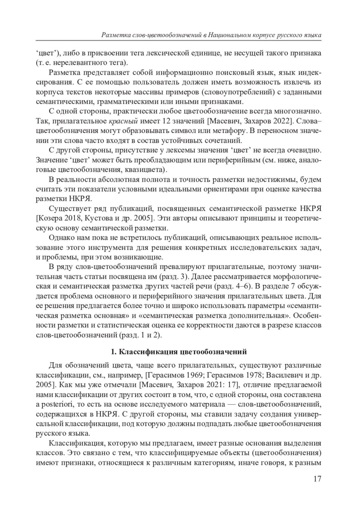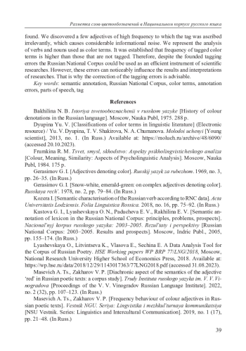 9. Масевич А. Ц., Захаров В. П. Диахронический аспект семантики прилагательного красный в русских поэтических текстах: корпусное исследование // Труды Института русского языка им. В. В. Виноградова. 2022. № 2 (32). С. 107-123. EDN: FUZKTV