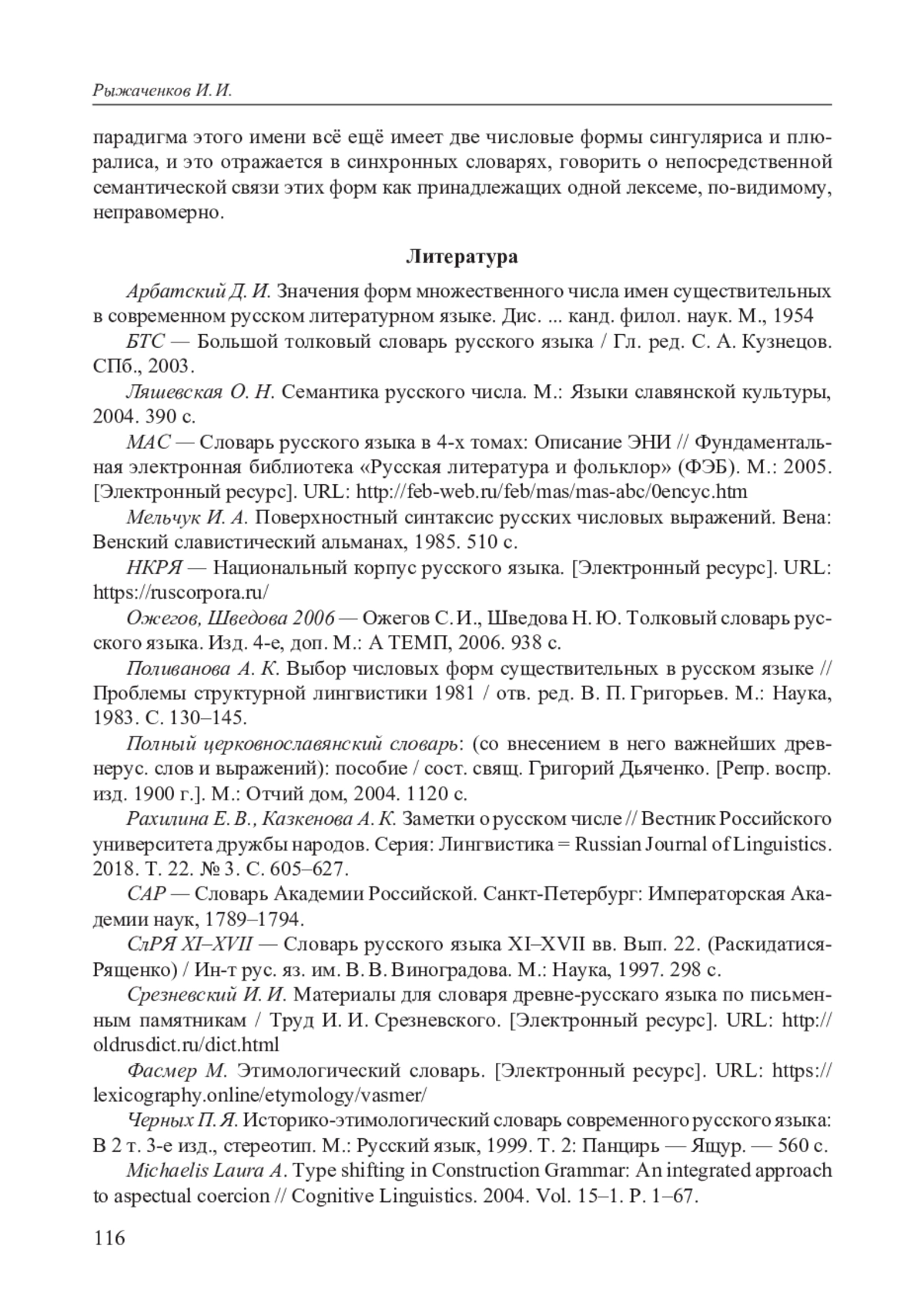 10. Рахилина Е. В., Казкенова А. К. Заметки о русском числе // Вестник Российского университета дружбы народов. Серия: Лингвистика = Russian Journal of Linguistics. 2018. Т. 22. № 3. C. 605-627. EDN: UZKIAO