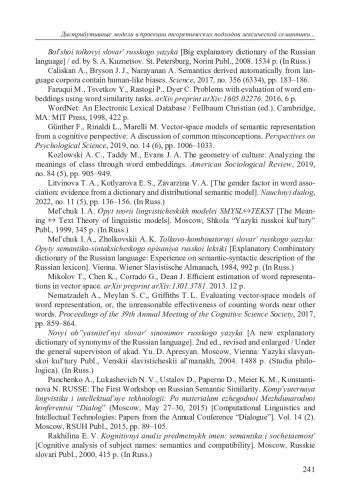 15. Baroni M., Bernardi R., Zamparelli R. Frege in Space: A Program for Compositional Distributional Semantics // Linguistic Issues in Language Technologies. 2014. № 9. P. 241-346.