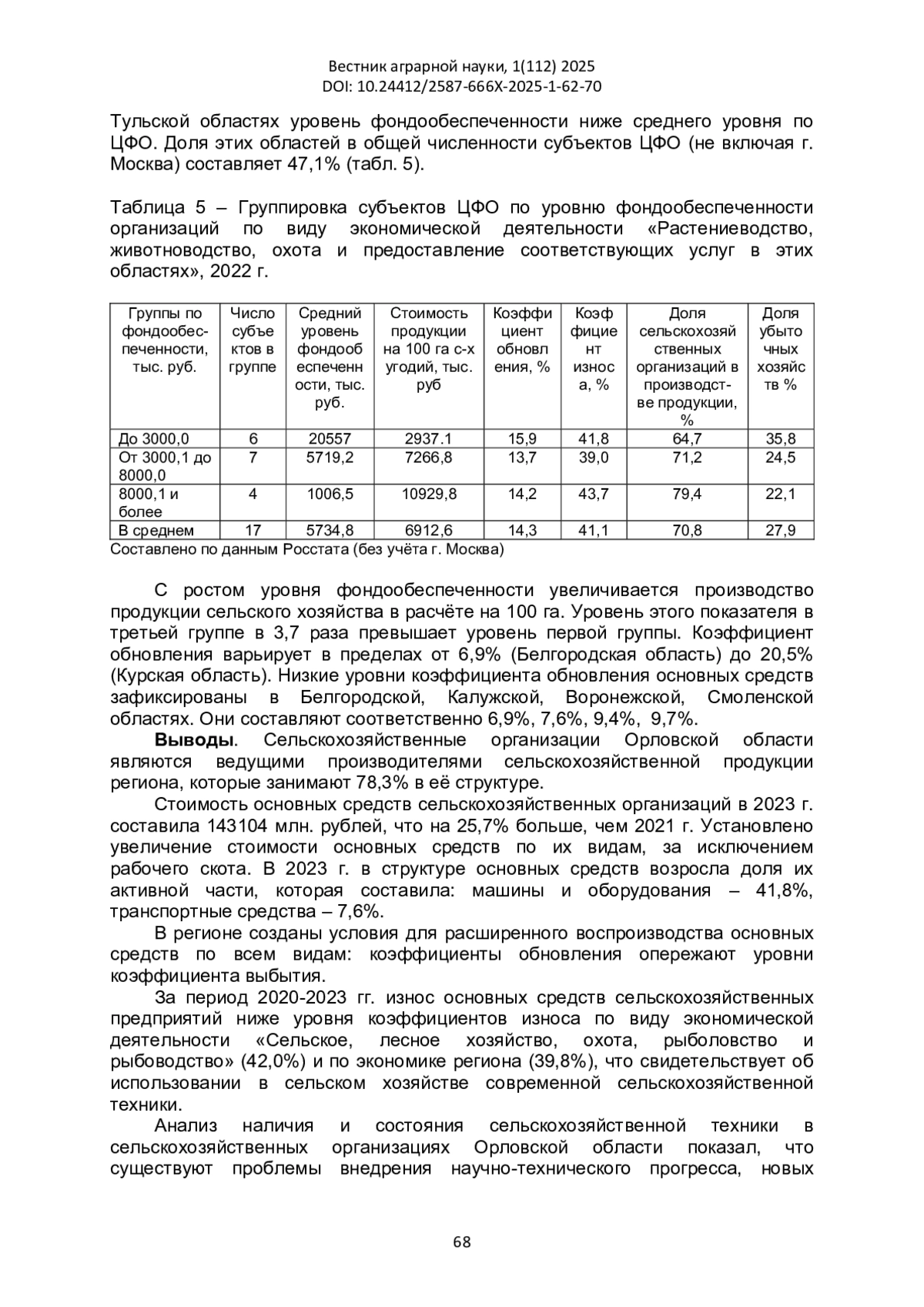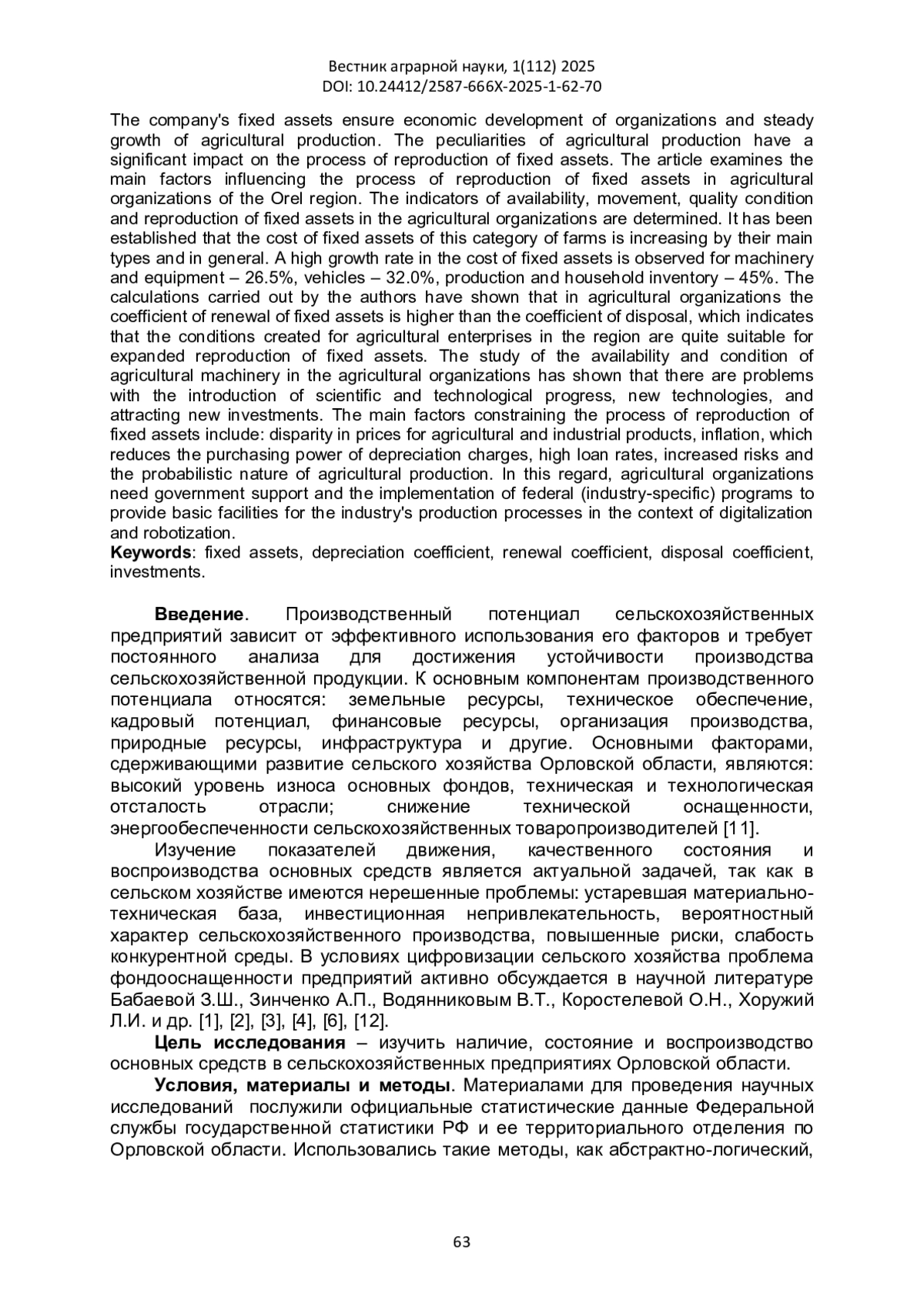 3. Водянников В.Т., Субаева А.К., Александрова Н.Р. Воспроизводство основных средств сельскохозяйственных организаций // Экономика сельского хозяйства России. 2023. № 4. (Проблемы эффективного хозяйствования). С.31-37. - URL: http://esxr.ru/article/4224 (дата обращения - 14.01.2025). EDN: VADEJI