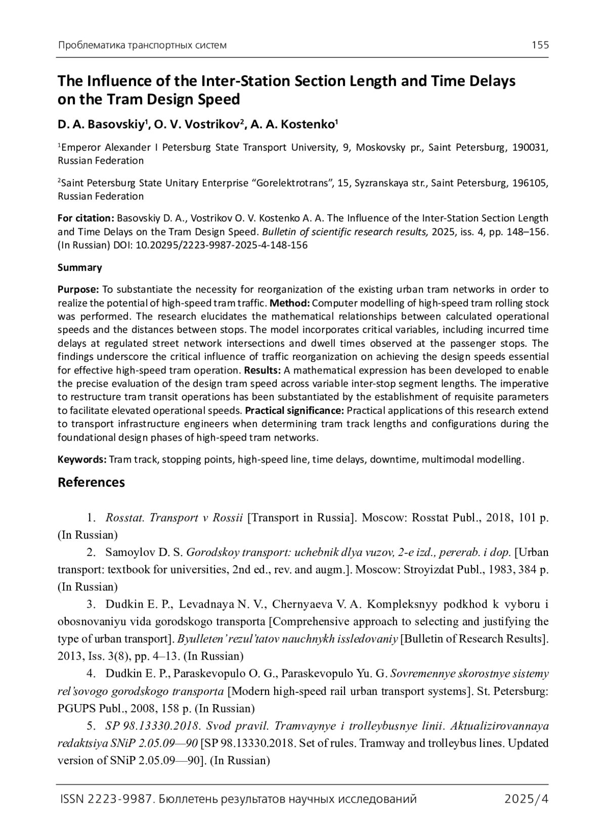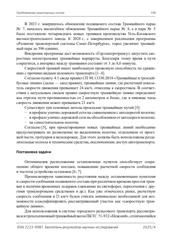 7. Мирончук А. А. Исследование влияния расстояния между остановочными пунктами на скорость движения трамвая / А. А. Мирончук, Ю. Ю. Добрынина // Инженерный вестник Дона. - 2020. - № 4(64). - С. 39.