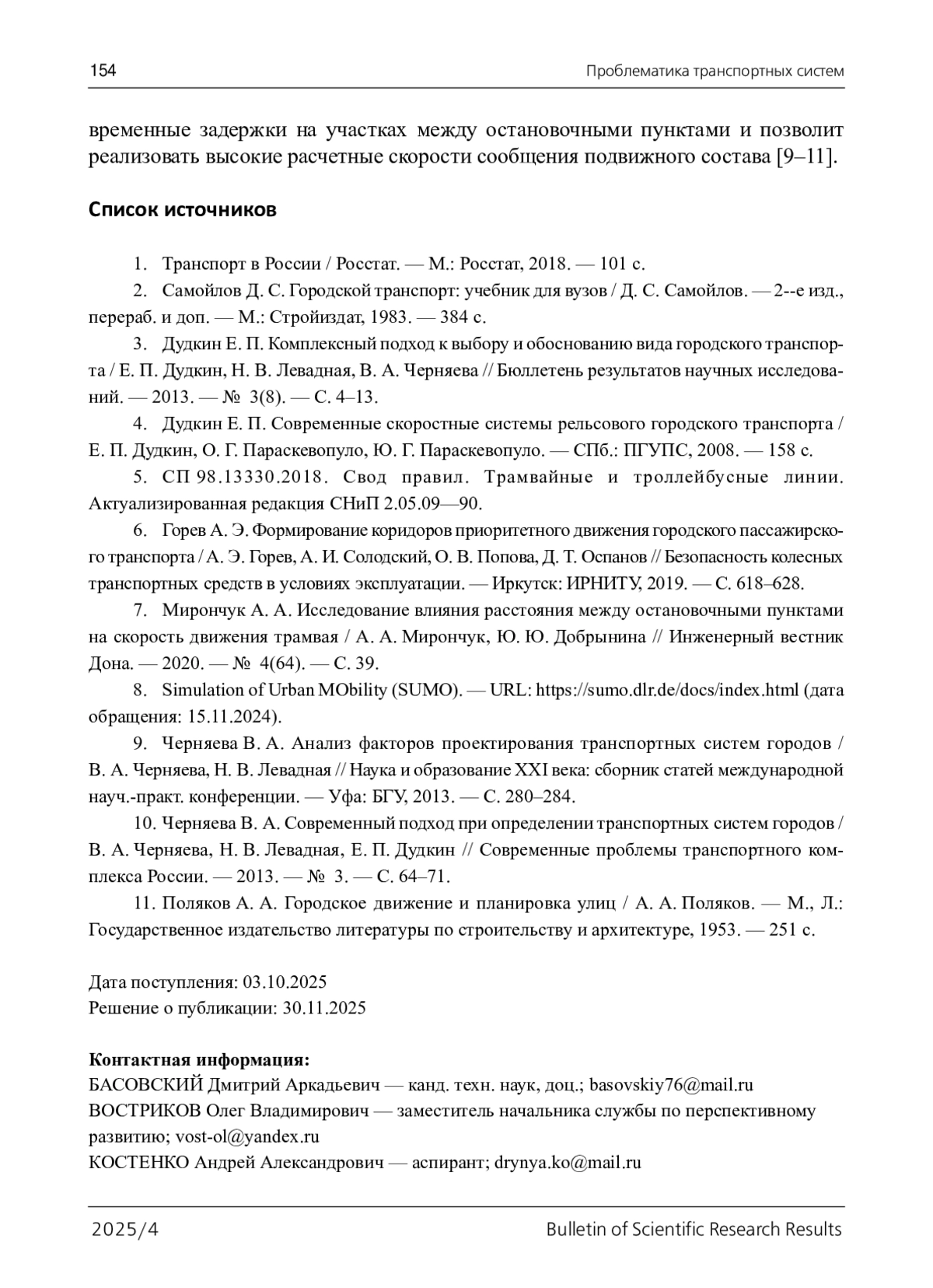 3. Дудкин Е. П. Комплексный подход к выбору и обоснованию вида городского транспорта / Е. П. Дудкин, Н. В. Левадная, В. А. Черняева // Бюллетень результатов научных исследований. - 2013. - № 3(8). - С. 4-13.