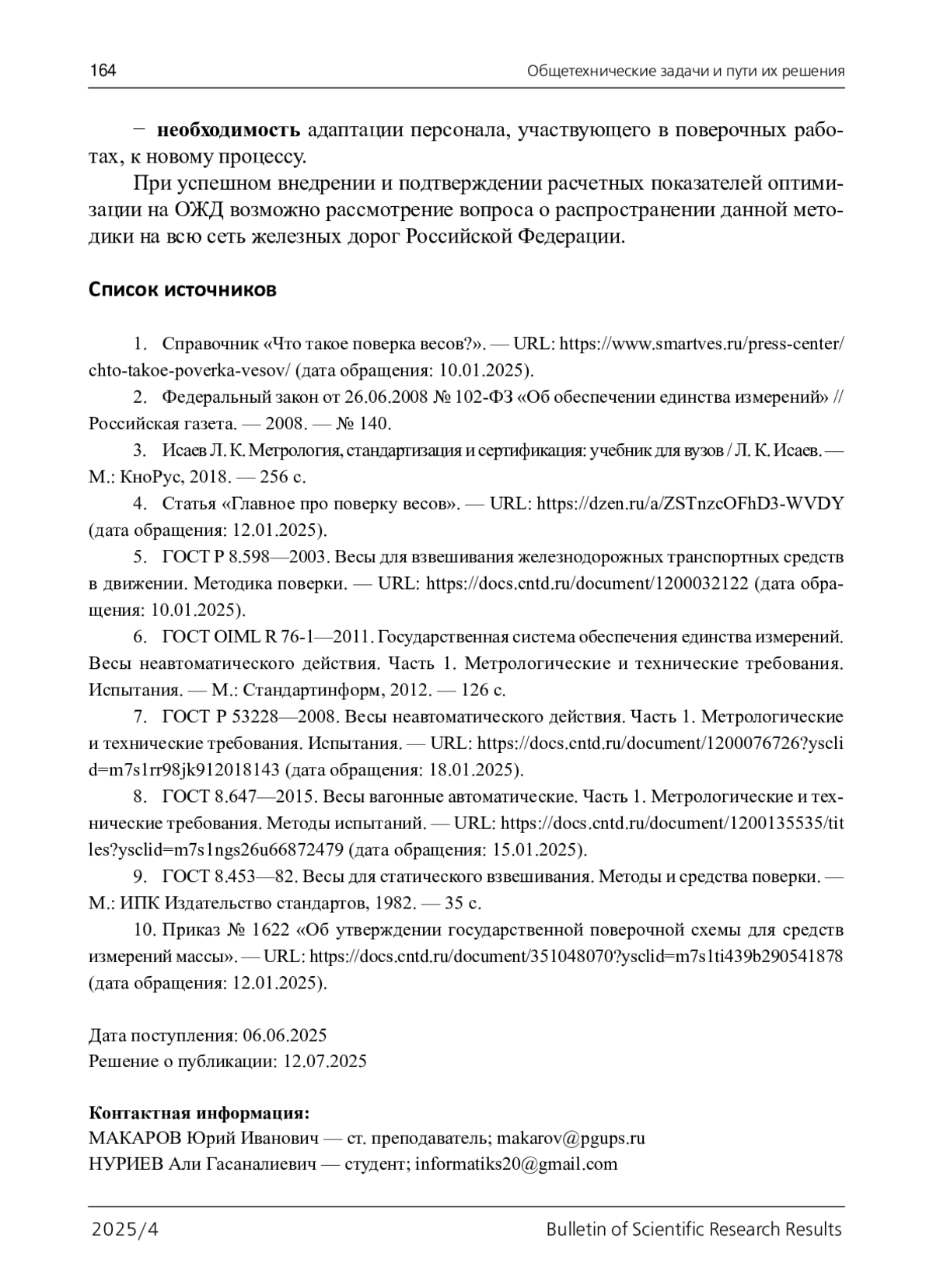 5. ГОСТ Р 8.598-2003. Весы для взвешивания железнодорожных транспортных средств в движении. Методика поверки. - URL: https://docs.cntd.ru/document/1200032122 (дата обращения: 10.01.2025).