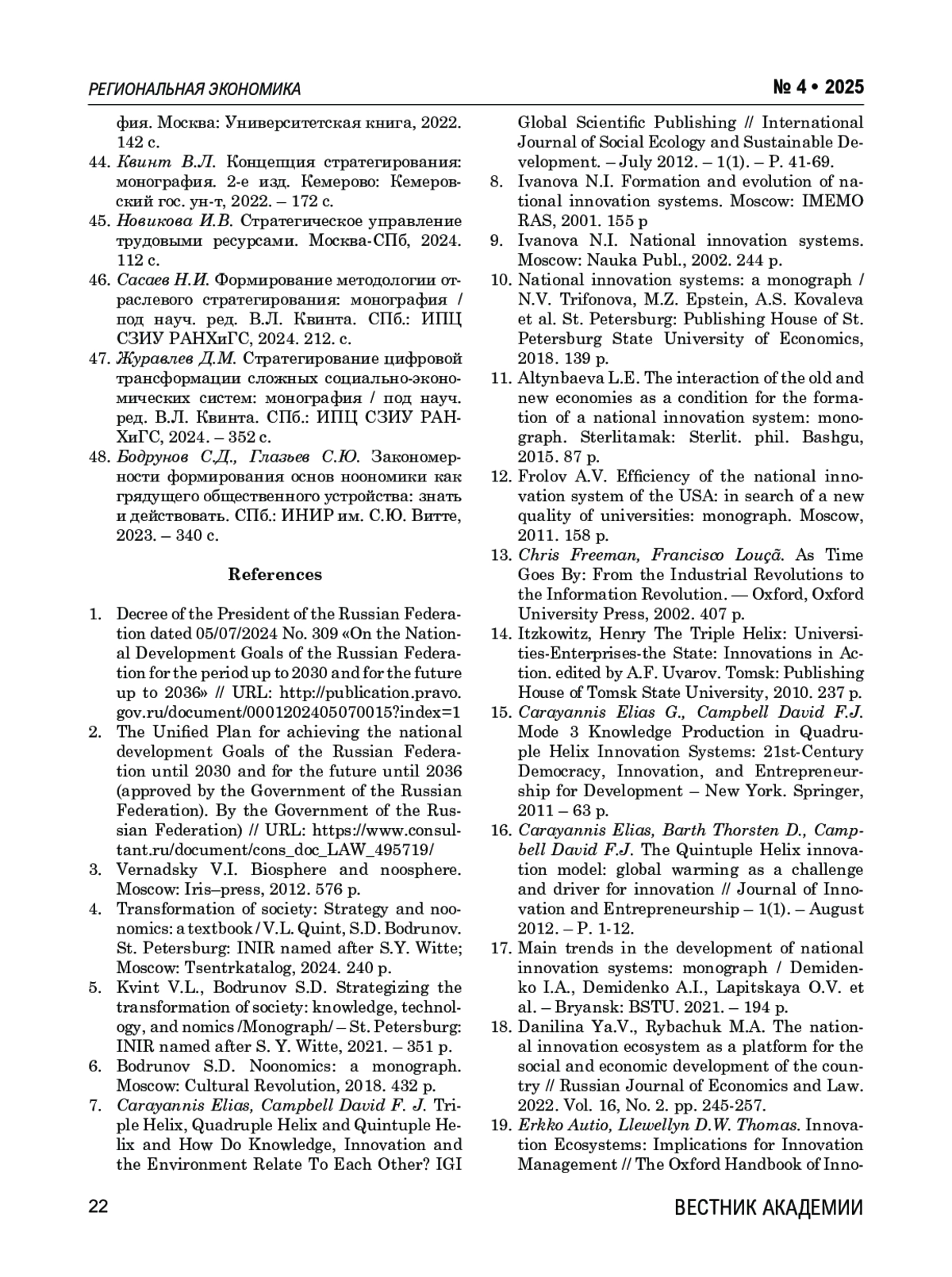 48. Бодрунов С.Д., Глазьев С.Ю. Закономерности формирования основ ноономики как грядущего общественного устройства: знать и действовать. СПб.: ИНИР им. С.Ю. Витте, 2023. - 340 с.
