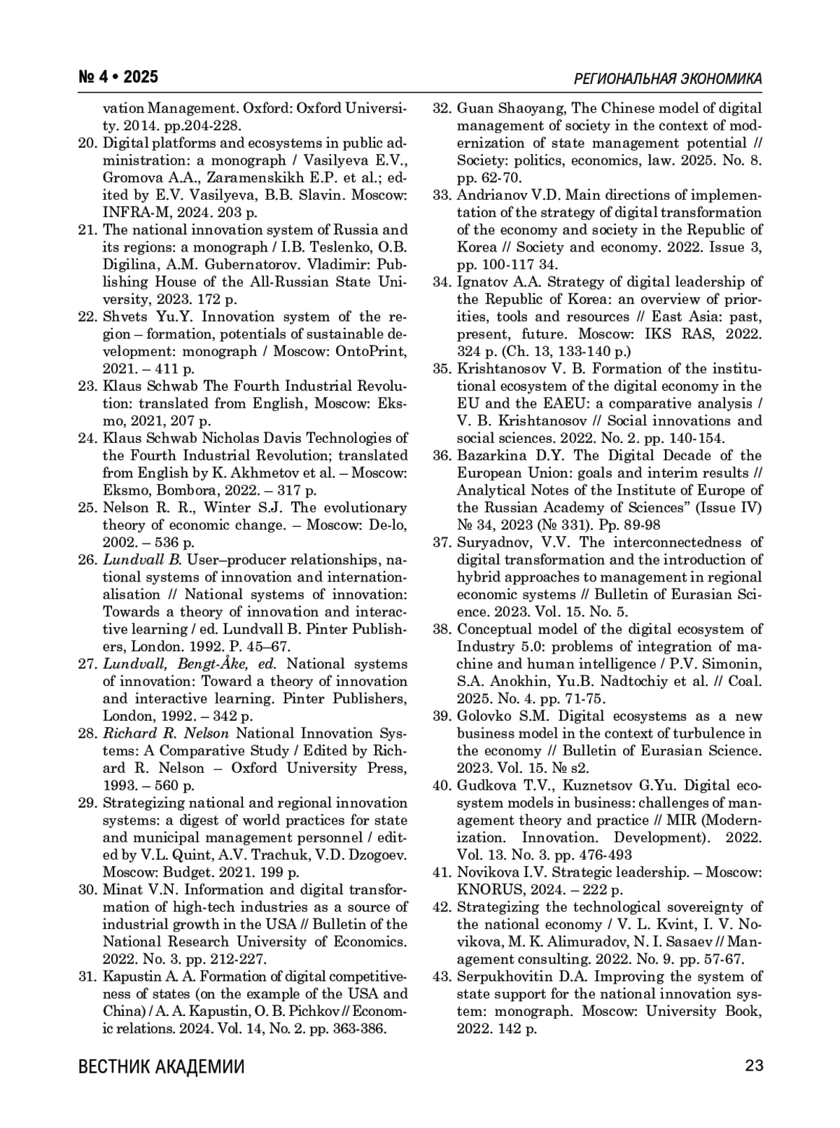 37. Суряднов, В.В. Взаимосвязанность цифровой трансформации и внедрения гибридных подходов к управлению в региональных экономических системах // Вестник евразийской науки. 2023. Т. 15. № 5.