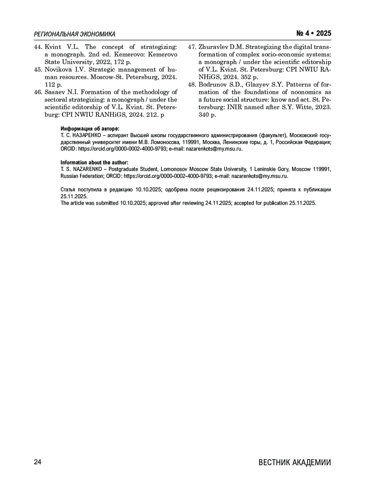 47. Журавлев Д.М. Стратегирование цифровой трансформации сложных социально экономических систем: монография / под науч. ред. В.Л. Квинта. СПб.: ИПЦ СЗИУ РАНХиГС, 2024. - 352 с.