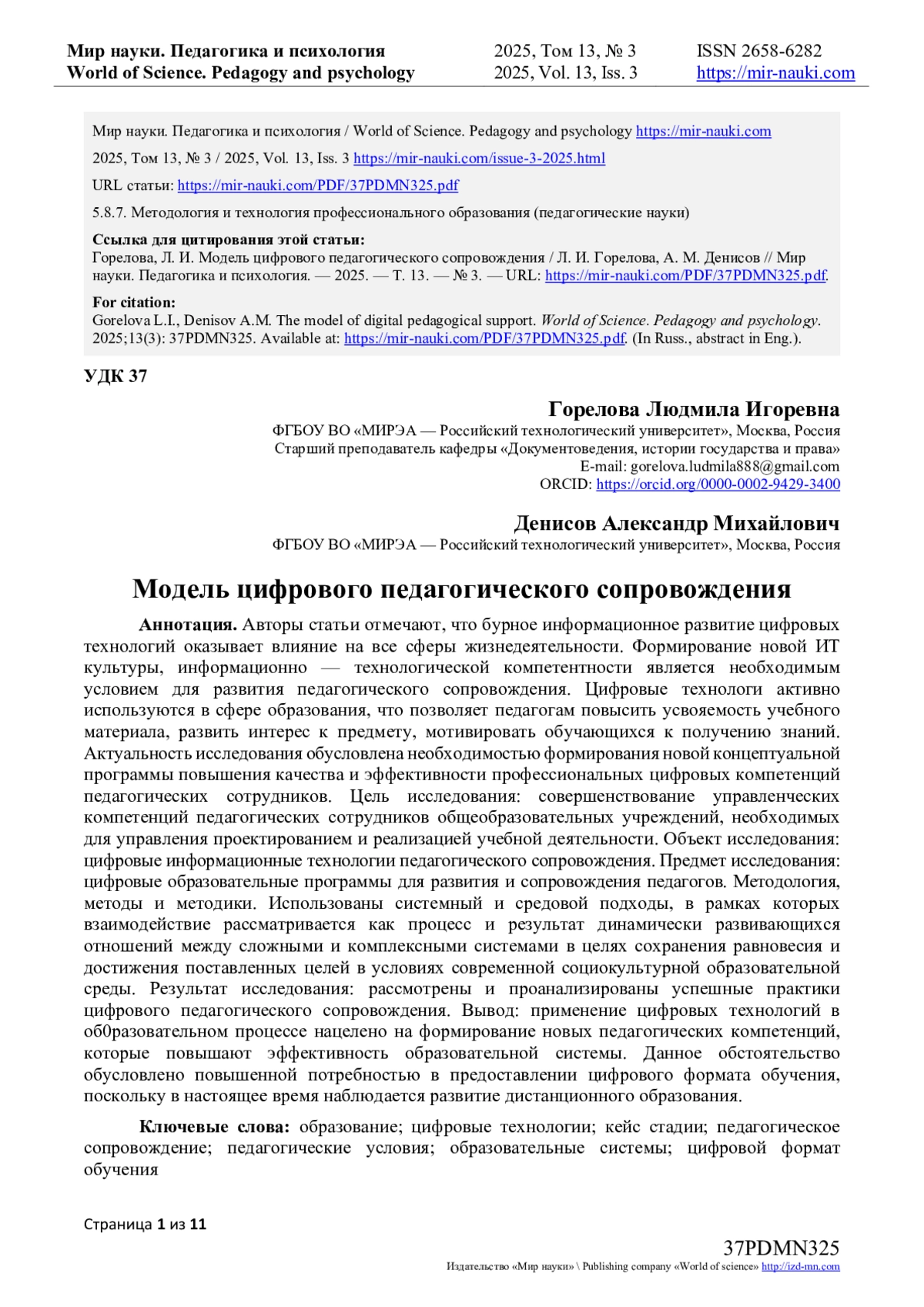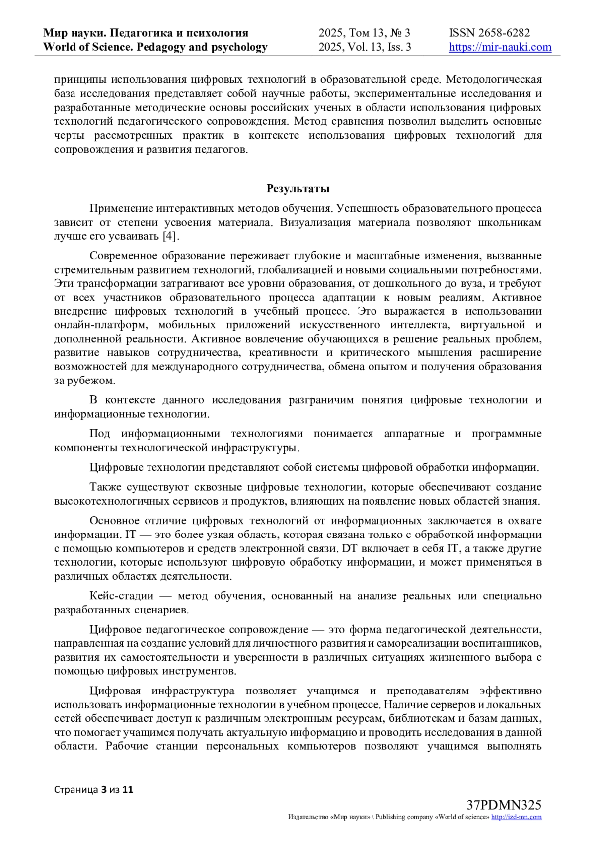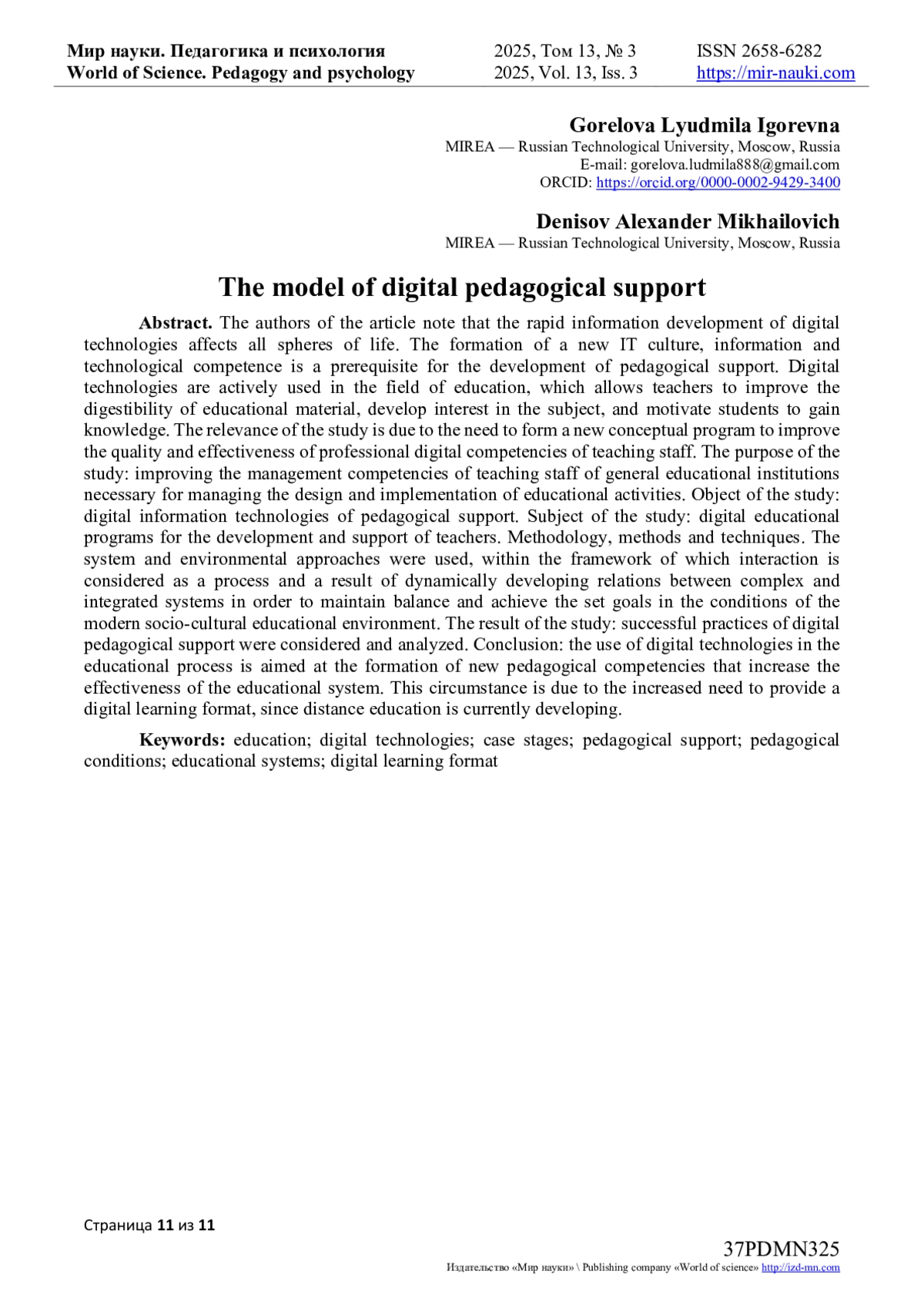 Результат исследования: рассмотрены и проанализированы успешные практики цифрового педагогического сопровождения.