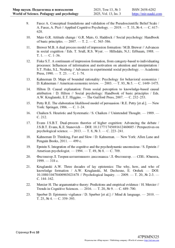 9. Fasce A. Conceptual foundations and validation of the Pseudoscientific Belief Scale / A. Fasce, A. Picó // Applied Cognitive Psychology. - 2019. - Т. 33, № 4. - С. 617-628.