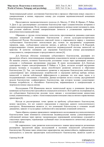На сегодняшний день проблема психологического благополучия остается одной из малоизученных в психологической науке. Ввиду большого количества различных подходов в понимании благополучия, а также изменчивости его критериев под влиянием времени и культурно-исторических процессов, становится невозможным разработать единую трактовку данного термина.