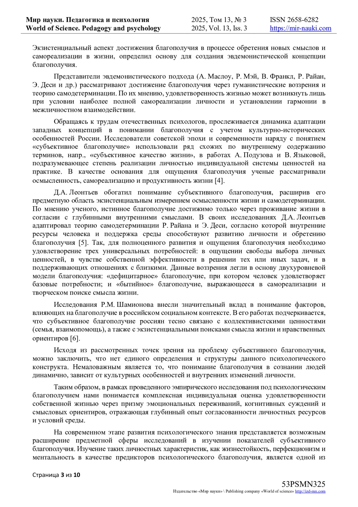 6. Шамионов Р.М. Психология субъективного благополучия [Текст] / Р.М. Шамионов // Вопросы социальной психологии личности. - 2003. - № 4. - С. 27-41.