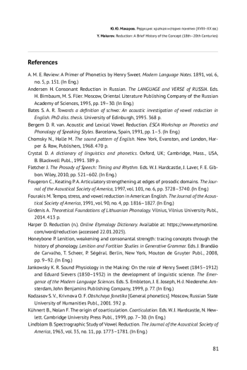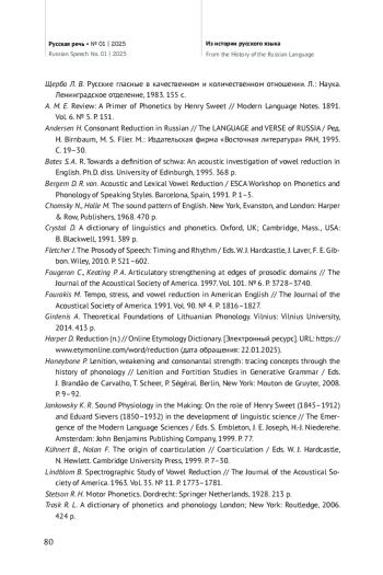 36. Andersen H. Consonant Reduction in Russian // The LANGUAGE and VERSE of RUSSIA / Ред. H. Birnbaum, M. S. Flier. М.: Издательская фирма “Восточная литература” РАН, 1995. С. 19-30.