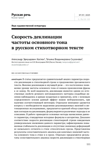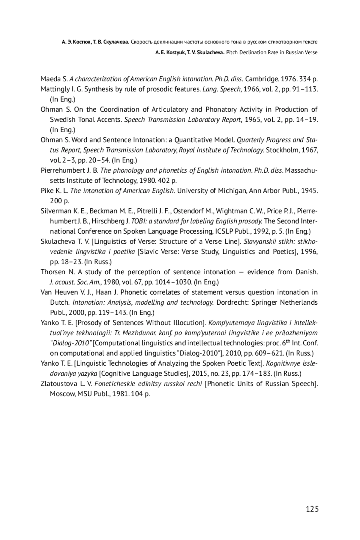 16. Kocharov D., Volskaya N., Skrelin P. F0 declination in Russian revisited // Proceedings of the 18th International Congress of Phonetic Sciences, TSC for ICPhS. 2015. Vol. 293. P. 1-5.