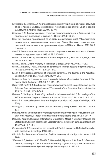 1. Ерешко А. Е. Интонационное оформление строки стихотворного текста // Славянский стих: стиховедение, лингвистика и поэтика: материалы международной конференции 19-23 июня 1995 г. М.: Наука, 1996. С. 99-104.