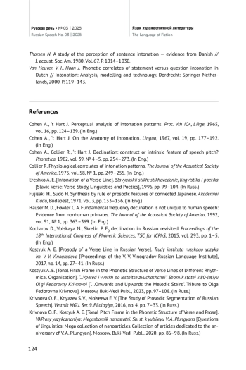 10. Cohen A., ‘t Hart J. Perceptual analysis of intonation patterns // Proc. Vth ICA, Liège, 1965. Vol. 16. P. 124-139.