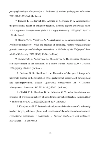 12. Ходякова Н. В. Профессионально-личностное развитие вузовского педагога: целевые ориентиры, фазы и условия образовательной среды // Прикладная психология и педагогика. 2024. Т. 9. № 1. С. 1-12. EDN: GVWXLR
