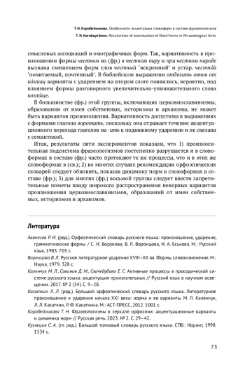 5. Коробейникова Т. Н. Фразеологизмы в зеркале орфоэпии: акцентуационные варианты и динамика норм // Русская речь. 2023. № 2. С. 29-42. EDN: CSQEDZ