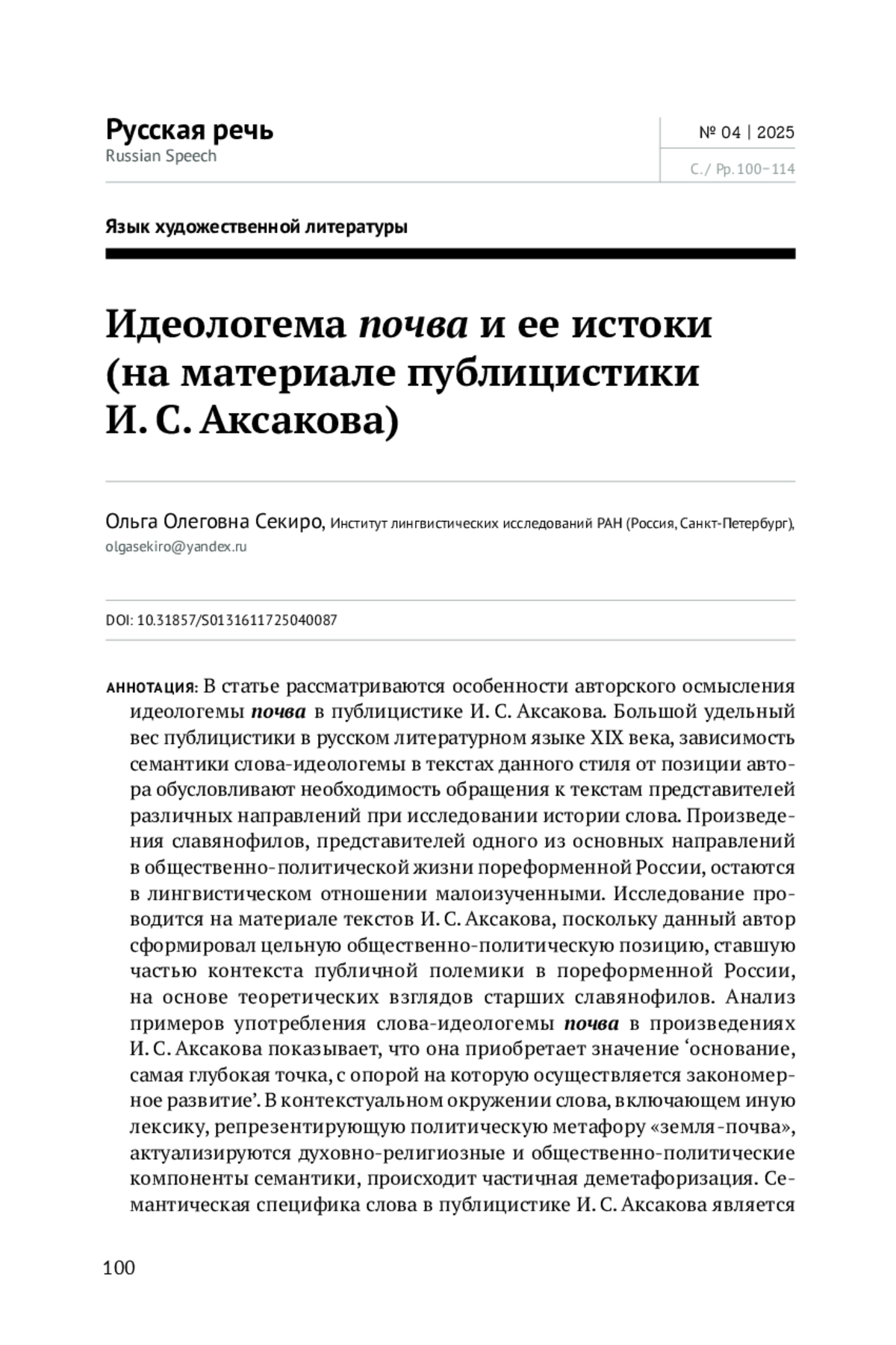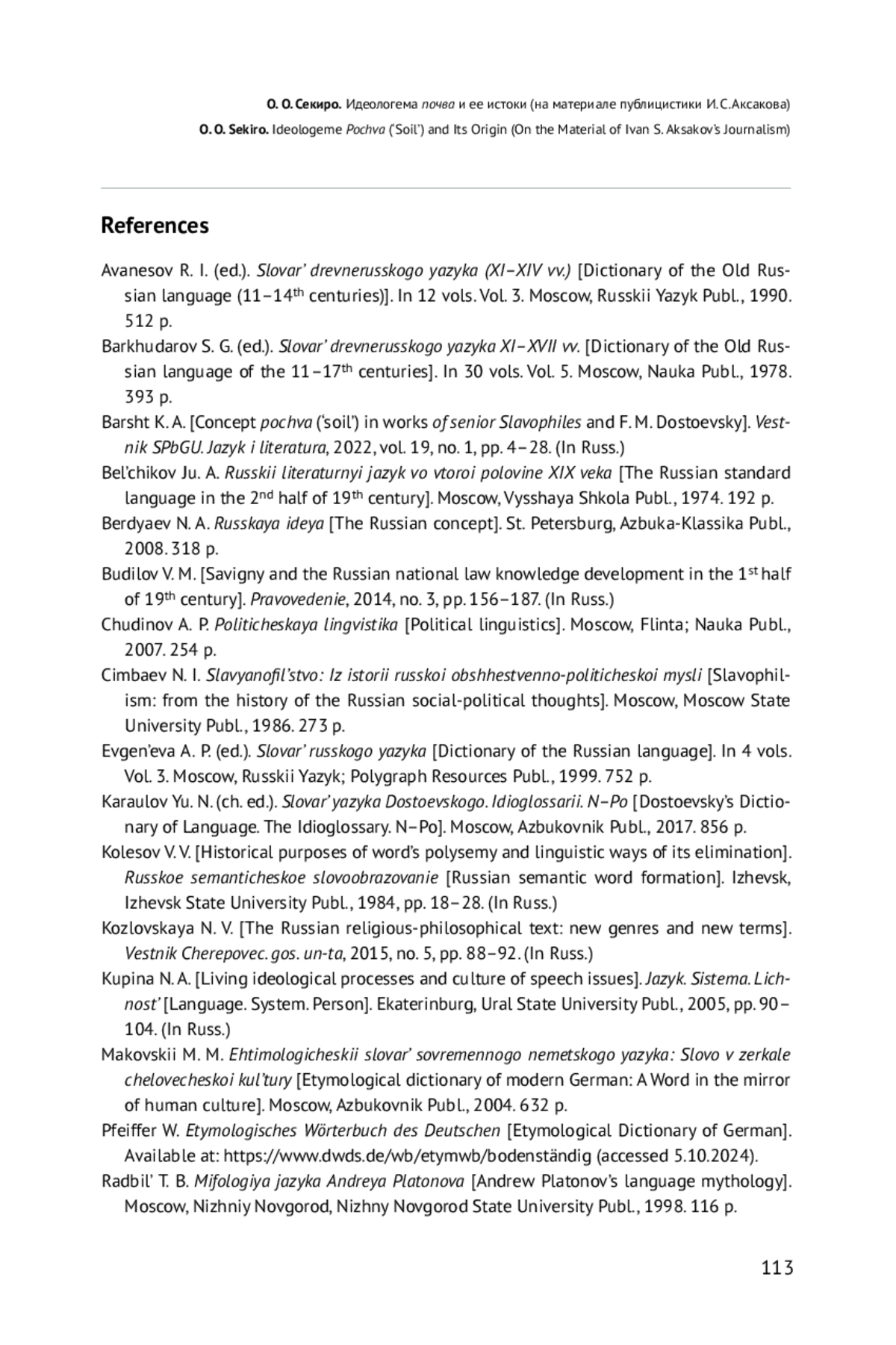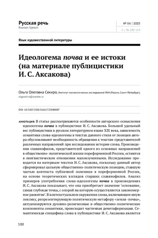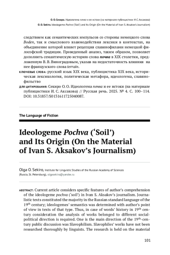24. O. O. Sekiro. Ideologeme Pochva (‘Soil’) and Its Origin (On the Material of Ivan S. Aksakov’s Journalism).
