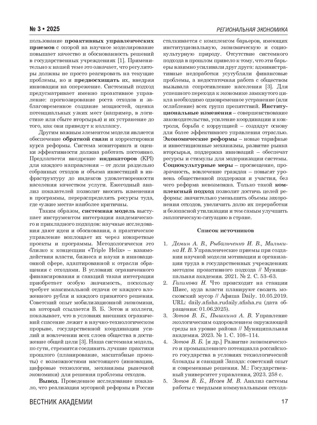 5. Зотов В. Б., Исаев М. В. Анализ системы работы с твердыми коммунальными отходами в Москве // Муниципальная академия. 2024. № 1. С.