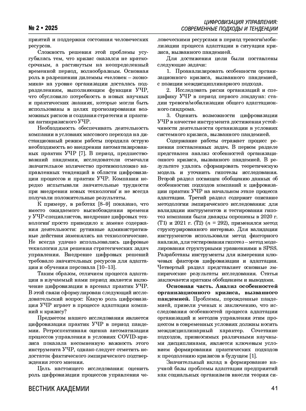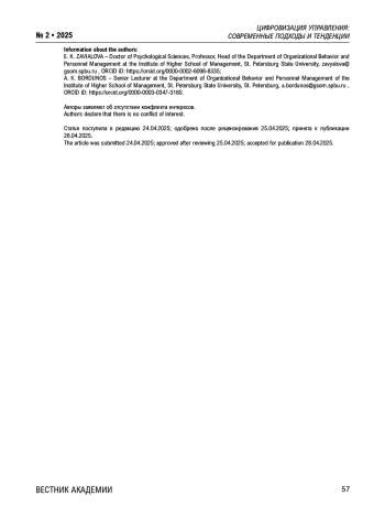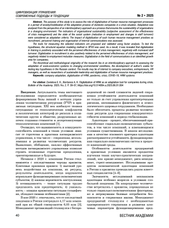 Теоретическая и методологическая оригинальность исследования заключается в междисциплинарном подходе к оценке адаптации социально-экономических систем в изменяющихся условиях среды, разработке авторских шкал для тестирования ключевых гипотез в российском контексте. Результаты могут быть интересны руководителям компаний, предпринимателям, менеджерам по персоналу, а также исследователям устойчивого лидерства и цифровизации практик управления человеческими ресурсами.