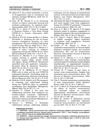 51. Li Z., Yang, C., Yang, Z., & Zhao, Y. The impact of middle managers’ digital leadership on employee work engagement //Frontiers in Psychology. - 2024. - Vol. 15.