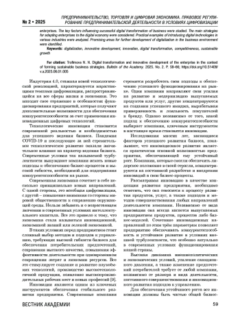 Индустрия 4.0, ставшая новой технологической революцией, характеризуется нарастающими темпами цифровизации, распространяющейся на все сферы жизни и экономики. Это находит свое отражение в особенностях функционирования предприятий, которые получают дополнительные возможности для обеспечения конкурентоспособности за счет применения инновационных цифровых технологий.