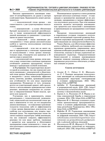 4. Марипова Ф. А. Факторы успешного управления промышленным предпринимательством в условиях цифровизации: перспективы республики Таджикистан. 2024. URL: https://clck.ru/3MFWGD.