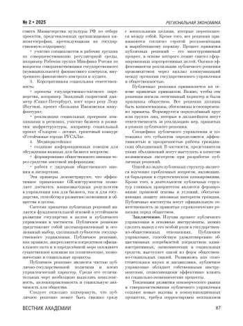 В эпоху глобализации, когда происходит трансформация всех сфер деятельности, особое значение приобретают функции публичного управления. Публичное управление как отдельная отрасль исследований начало формироваться примерно 30 лет назад. Данное направление является достаточно новым, и, как подчёркивают исследователи, находится на «подростковом» этапе [7]. На текущий момент публичное управление представляет особый интерес для отечественных и зарубежных авторов, поскольку нуждается в систематизации и актуализации приоритетных направлений развития.