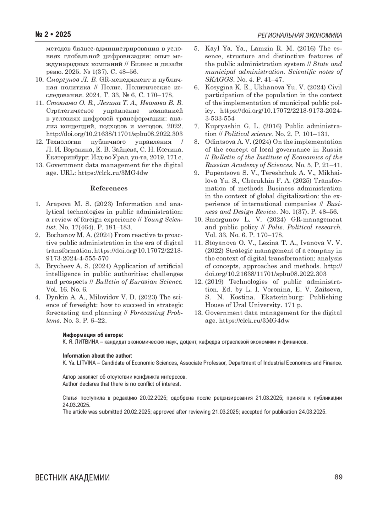 2. Бочанов М. А. От реактивного к проактивному государственному управлению в эпоху цифровой трансформации. 2024. URL:. DOI: 10.17072/2218-9173-2024-4-555-570