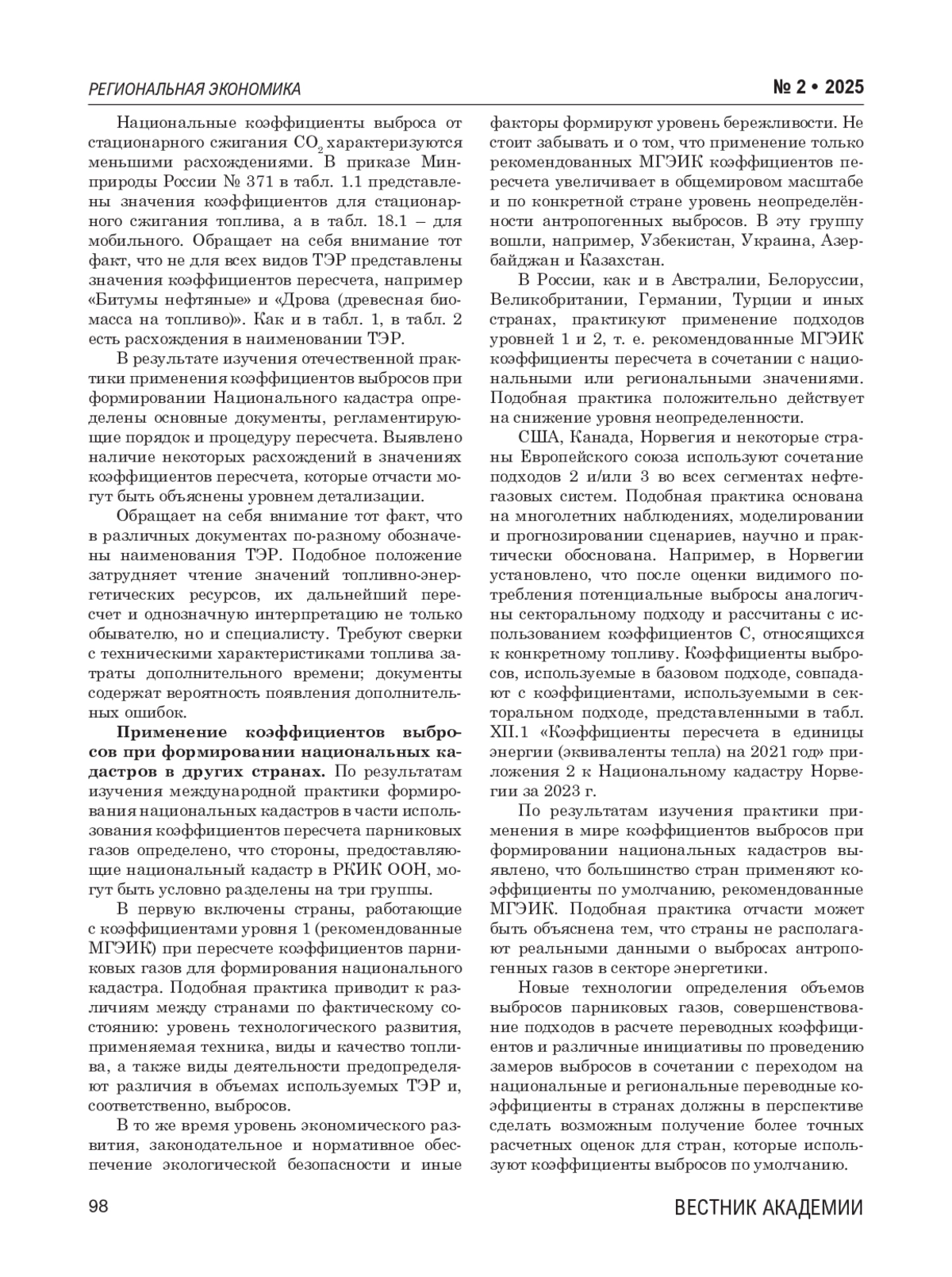 Целью работы является оценка основных зарубежных методик и отечественных подходов при формировании национального кадастра в секторе энергетики с акцентом на использовании коэффициентов пересчета выбросов различного уровня и их соразмерности.
