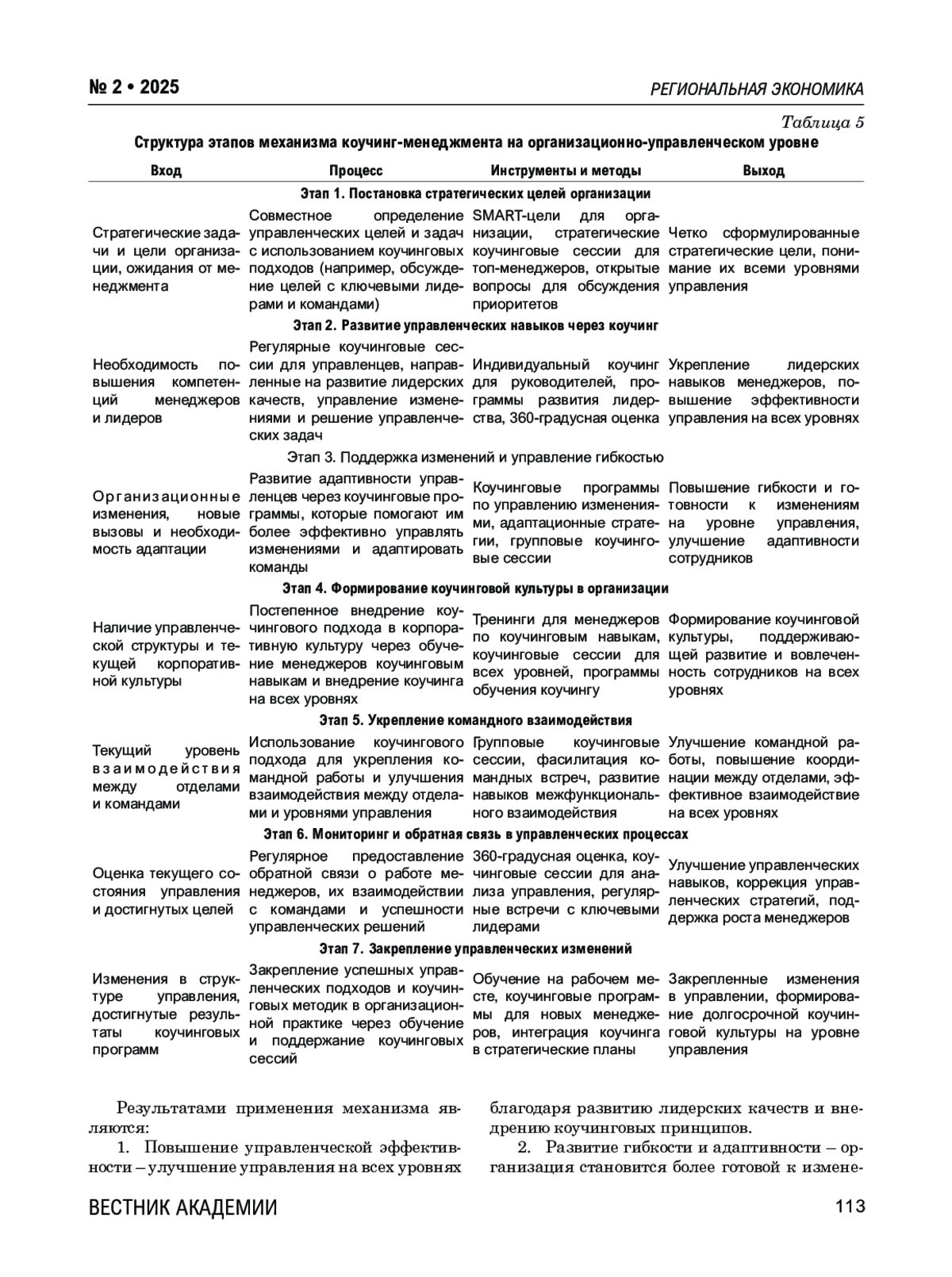 Представлена классификация реквестов в коучинг-менеджменте, разработана концепция коучингового ядра как системного элемента управления организацией. Выдвинута гипотеза о том, что внедрение коучинг-менеджмента способствует улучшению стратегического планирования, повышению мотивации сотрудников и формированию организационной среды, ориентированной на развитие. Предложены направления дальнейших исследований, включая количественные методы оценки влияния коучинга на производственные и финансовые показатели организации.