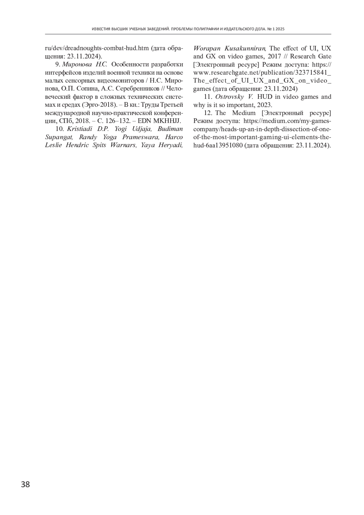 5. Palm J.M. How does the game industry create user interface design? // University of Skövde, Digitala Vetenskapliga Arkivet [Электронный ресурс], 2022 Режим доступа: https://www.diva-portal.org/smash/get/diva2:1710174/FULLTEXT01.pdf (дата обращения: 23.11.2024).