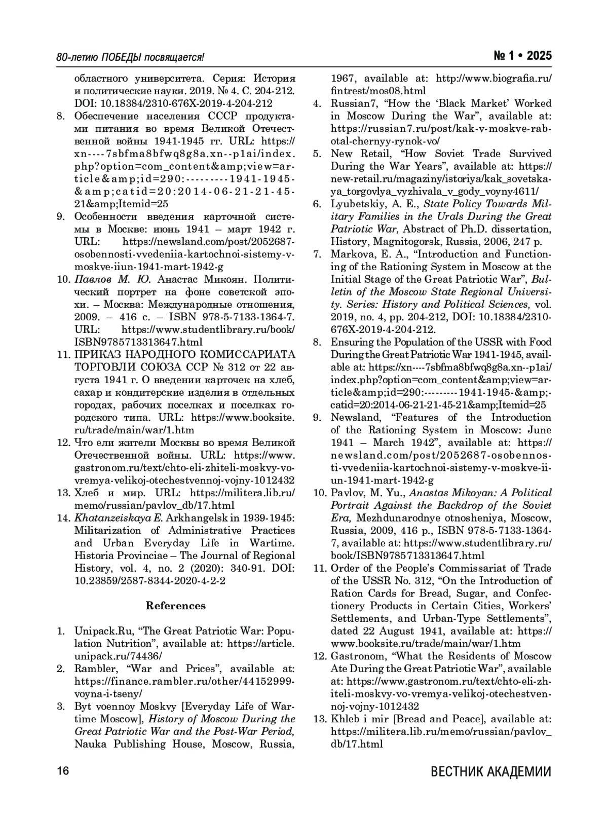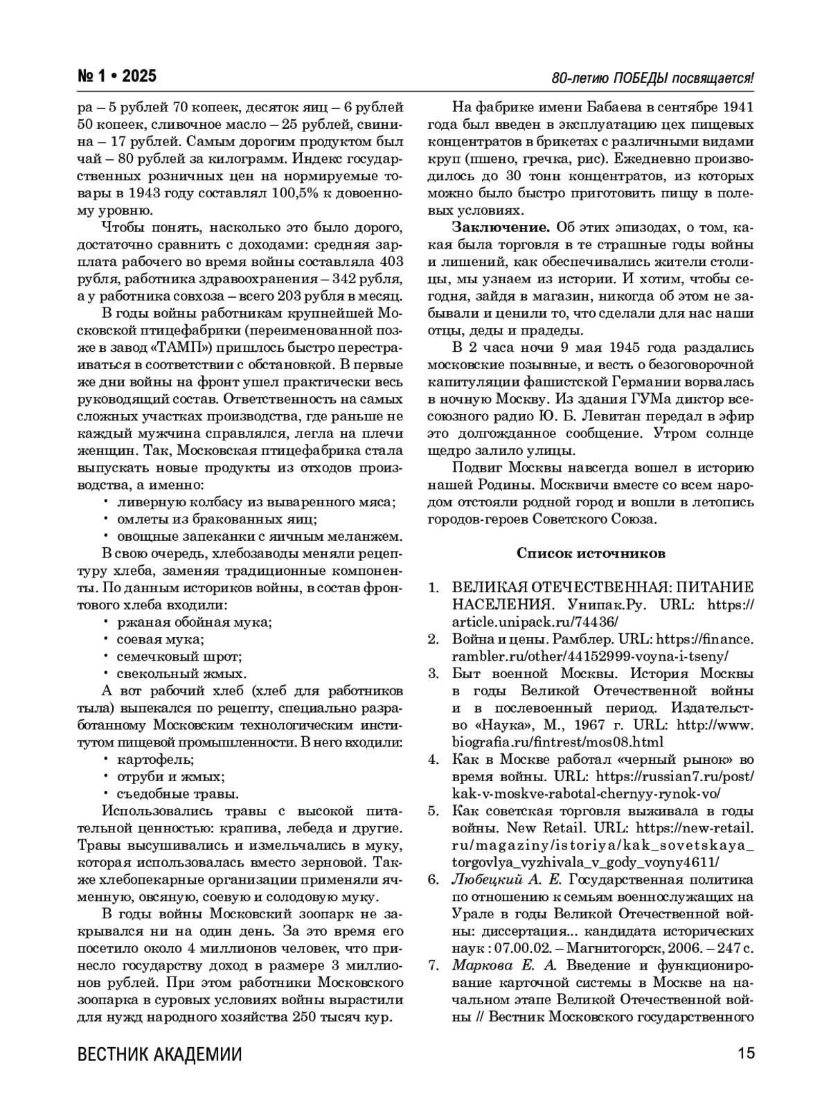 1. ВЕЛИКАЯ ОТЕЧЕСТВЕННАЯ: ПИТАНИЕ НАСЕЛЕНИЯ. Унипак.Ру. URL: https://article.unipack.ru/74436.