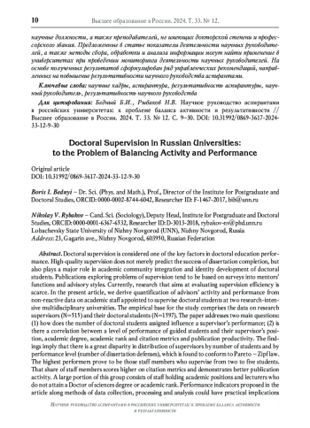 31. Бедный Б.И., Рыбаков Н.В., Жучкова С.В. О влиянии институциональных трансформаций на результативность российской аспирантуры // Высшее образование в России. 2022. Т. 31. № 11. С. 9-29. DOI: 10.31992/0869-3617-2022-31-11-9-29 EDN: RHANGJ